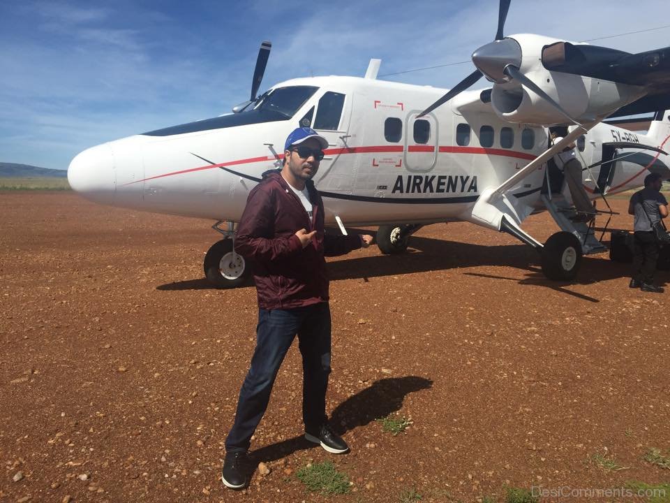 Mika Singh Posing With Glider Plane