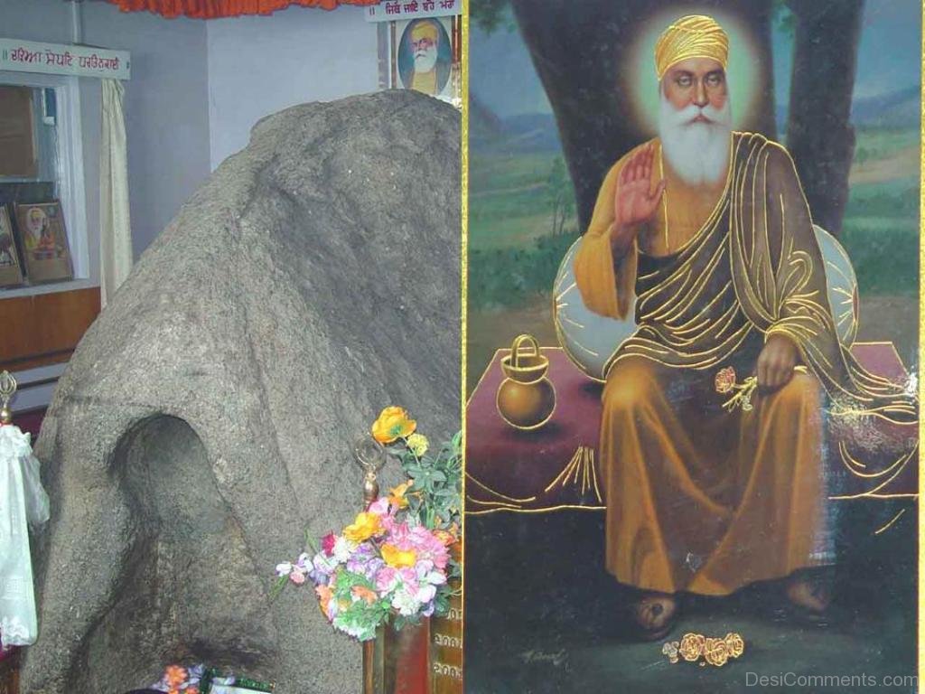 Guru Nanak Dev Ji Stopping The Stone Image