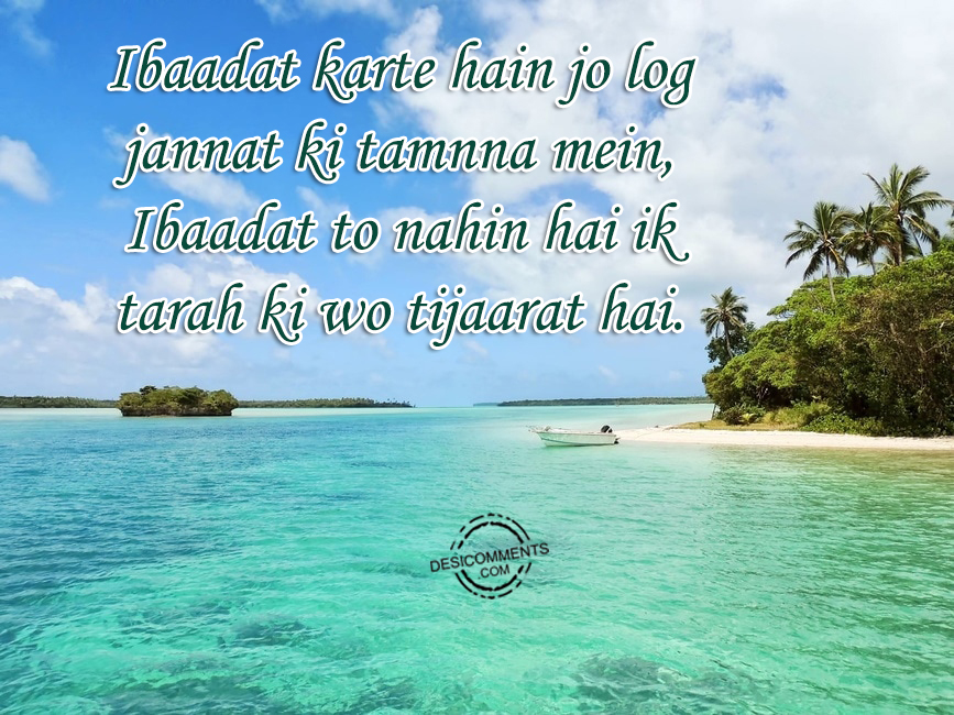 Ibaadat karte hain jo log jannat ki tamnna mein, Ibaadat to nahin hai ik tarah ki wo tijaarat hai.